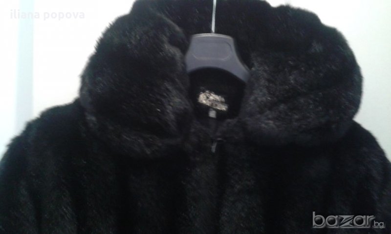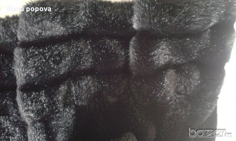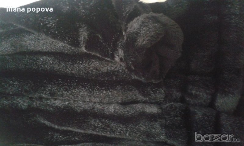 Палтото има два джоба.За съжаление на снимките не успях да уловя красивия му гарваново черен цвят и трептящите сребристи връхчета.Палтото е от еко кожа.Меко ,красиво и изключително елегантно .
