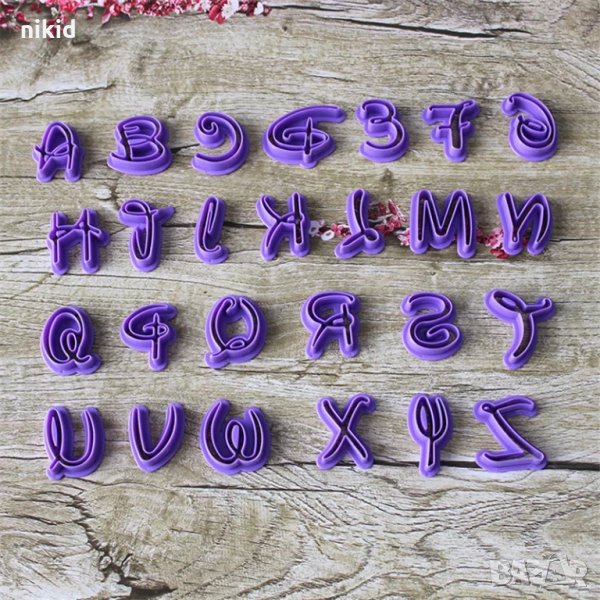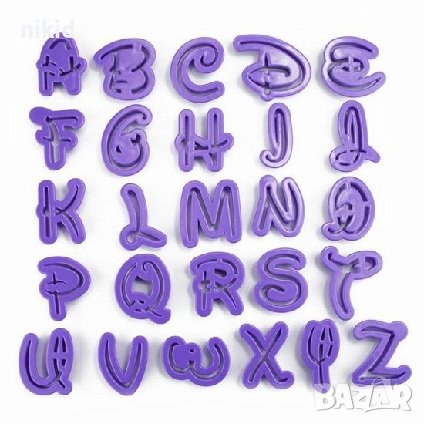 Стил Дисни Disney 26 букви азбука латиница форми ръкопис резци за украса декор торта тесто фондан → Обява 19095061