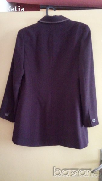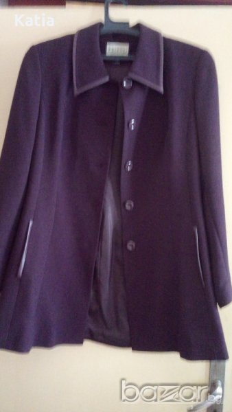 Костюма е подходящ за пролет и есен. Пройзводител - Busy, България, за износ. Има подплата, цвят - тъмнолилав. Нов, необличан, състои се от 2 части: