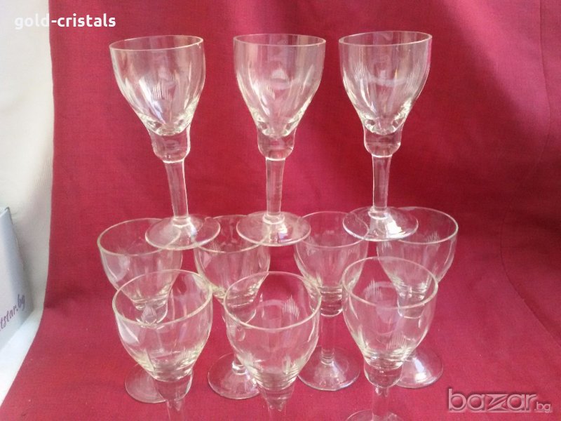Ретро стъклени чаши за ракия кристално стъкло гравирани 6бр- 48лв или 4бр +4бр с малка разлика -40лв сервиз комплект сет лот стари ретро старинни антикварни арт декор винтидж колекция стъклени на столче друга гравюра последна снимка. стари антикварни предмети обзавеждане за дома и семейството подходящи за подарък за ценители и колекционери