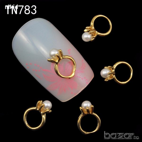 Сребрист Златист пръстен с перла бижу за нокти декорация украса за маникюр → Обява 19109348