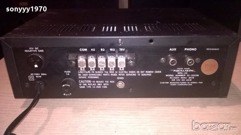 realistic mpa-20 solid state pa amplifier-внос швеицария