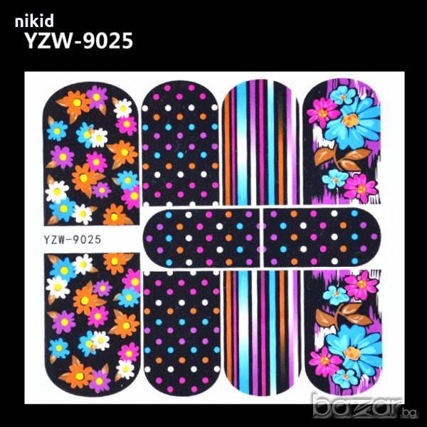YZW-9025 цветя и точки на черен фон ваденки водни стикери за нокти маникюр, снимка 1 - Продукти за маникюр - 19130796 YZW-9025 цветя и точки на черен фон ваденки водни стикери за нокти маникюр, снимка 2 - Продукти за маникюр - 19130796 1/2