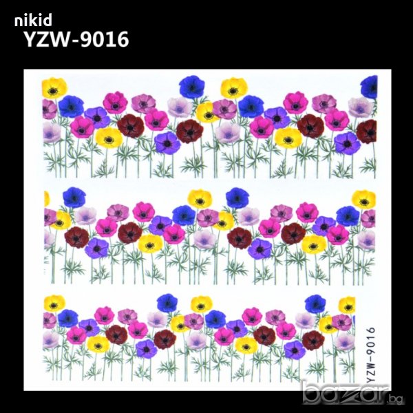 YZW-9016 цветни макове ваденки водни стикери за нокти маникюр → Обява 19130797