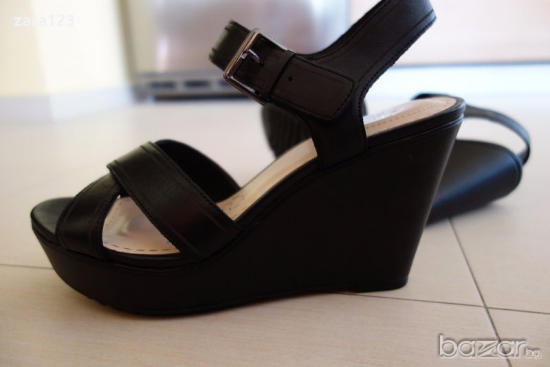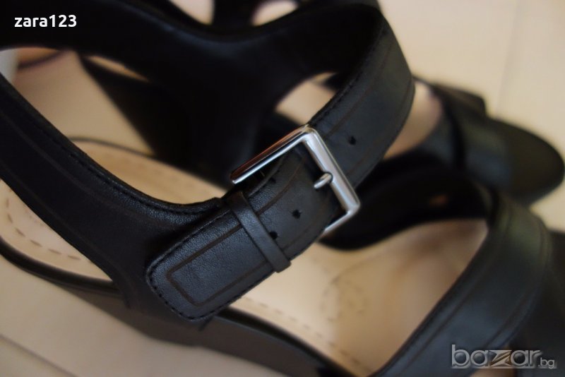 Страхотни черни кожени сандали Кларкс. На висока платформа са, с катарама. Абсолютно нови, без кутия. Стелката е 26,5см