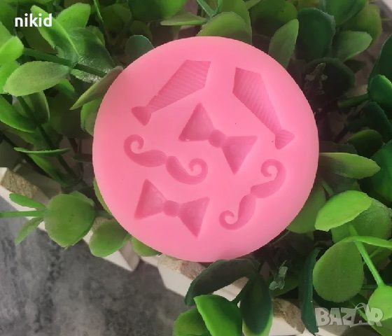 Папионка вратовръзка мустак силиконов молд форма декорация украса фондан торта мъфини и др → Обява 19149549