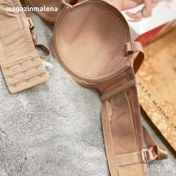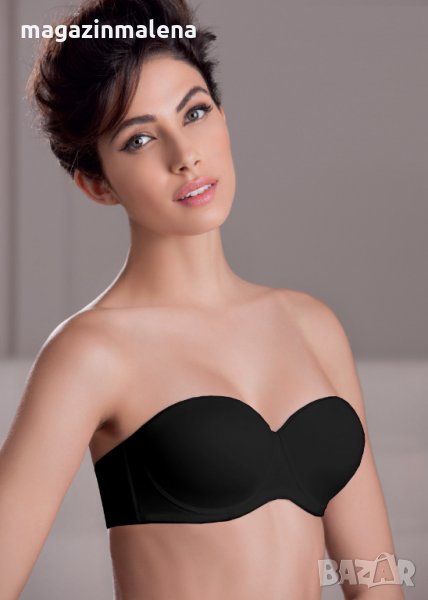 - може да се носи изцяло без презрамки, поради двуредния силикон от вътрешната страна на чашката, както и силикона отвътре по самия плат за максимално прилепване по тялото