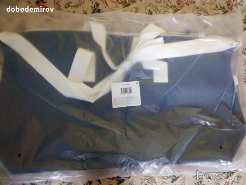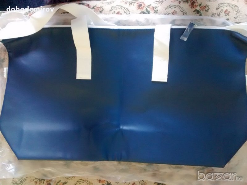 Едно голямо отделение и друго по малко в него за документи или подобни.Две текстилни дръжки в бяло и една такава регулируема за рамо в същия цвят.