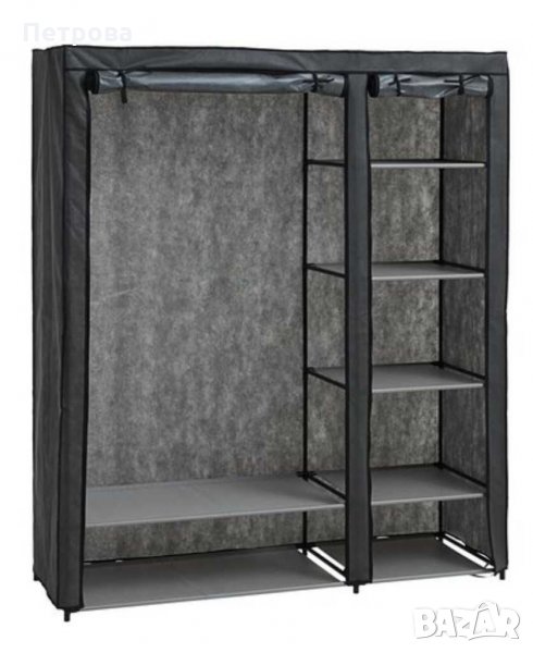 метални тръби. Размери:Ширина: 149 см.Височина: 174 см.Дълбочина: 50 см.Цена 69.99 лв.Гардеробите от текстил са изключително функционални. Те са проектирани да предпазят вашите дрехи,обувки и аксесоари от праха в мазето, тавана, в спалнята или детската стая. Спестяват място,удобни са и са предназначени за дълготрайна употреба.Гардероба е много компактен-заема незначително място,когато не е сглобен. Лесен за монтаж. Когато свързвате железните тръби и пластмасовите съединители, моля, завъртайте внимателно тръбата, вместо да я натискате директно във вътрешността на съединителя. Доставка с куриер-в рамките на два работни дни.