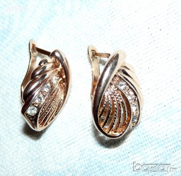Симпатични обички - цвят злато с бели камъчета цирконий