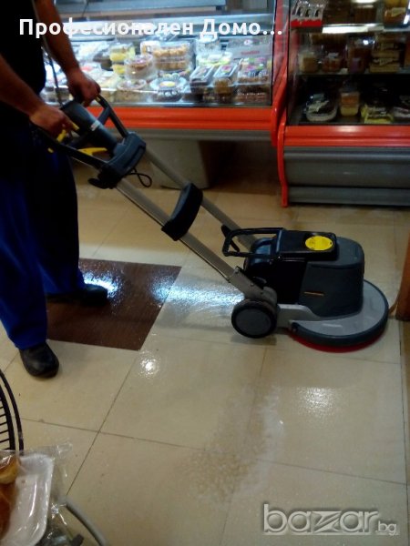 Основно и периодично почистване – чрез професионални машини и препарати, с които се премахват наслоявания от производството, следи от мотокари, електрокари и други замърсявания на :