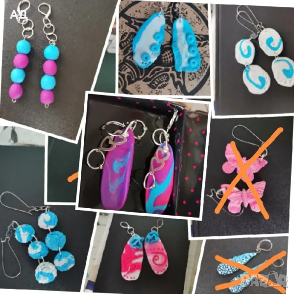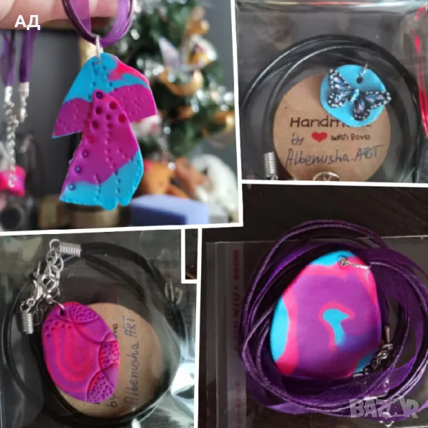 Полимерната глина на бижутата е : обеци по 5 лв, колиета по 6лв.