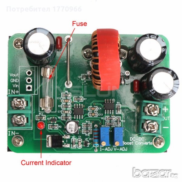 DC-DC Boost Converter, настройка на напрежение и ток с потенциометри.