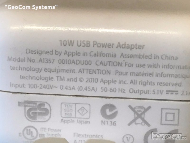 5.2V, 1/2.4A. Въвместимо със всички модели