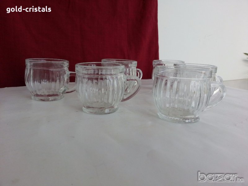 Руски стъклени чашки халбички грани 6бр 5/5см мини халбички стават за сосове хайвер кремове сладолед кафе аперитив и др старо руско производство сервиз комплект сет лот ретро арт декор винтидж колекция съветско ссср стари антикварни предмети обзавеждане за дома и семейството
