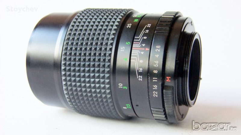 MC Cosinon Auto 135mm 1:2.8. Резба М42, работеща бленда в М режим. Много добро състояние на обектива. Запазен корпус, оптика без забележки, функциониращи фокус и бленда. Резба за филтър 55мм, две капачки. 80 лева.