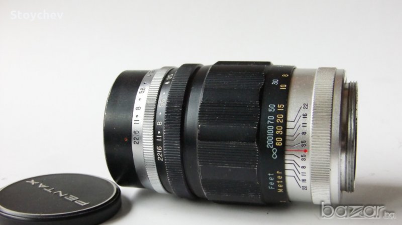 Takumar 135mm/3.5 Preset. М42. Първата 135-ца на Pentax. Леки следи от употреба по тялото, оптика без забележки, работещи фокус и бленда. Диаметър на филтъра 46 мм, 8 ламела. Две капачки. 100 лева. Неналичен