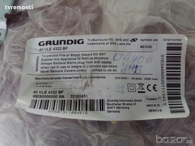 Main Board VTT190R-2 v.0 модел 40VLE4322 BF panel LTA400HM13
