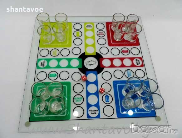 Вземете една от най-популярните игри в забавен парти вариант. Страхотен начин да се върнете в детството, но с игра за възрастни. Разликата с оригиналната версия на играта е, че вместо пионки имате на лице шотове.