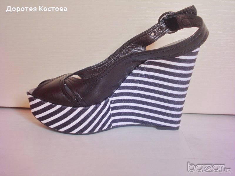 Нови сандали от естествена кожа, на платформа, номер 39, във винаги актуалната комбинация от черно и бяло, купени са за доста повече.