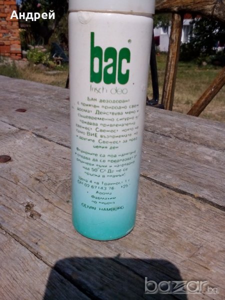 Опаковка,Флакон  от дезодорант BAC, снимка 1 - Антикварни и старинни предмети - 19254085 Опаковка,Флакон  от дезодорант BAC, снимка 2 - Антикварни и старинни предмети - 19254085 Опаковка,Флакон  от дезодорант BAC, снимка 3 - Антикварни и старинни предмети - 19254085 Опаковка,Флакон  от дезодорант BAC, снимка 4 - Антикварни и старинни предмети - 19254085 1/4