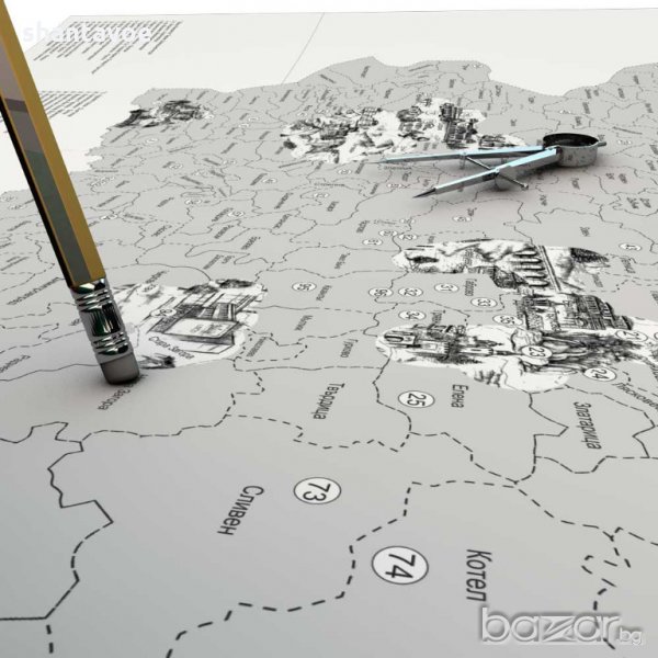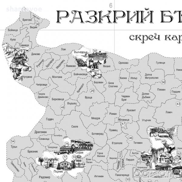 Скреч карта "Разкрий България" с изрисувани 100 обекта