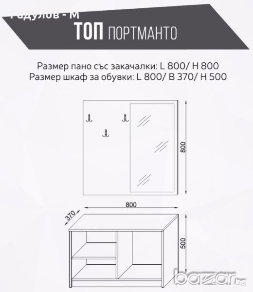 Размер шкаф за обувки Д/Ш/В 800/370/500мм