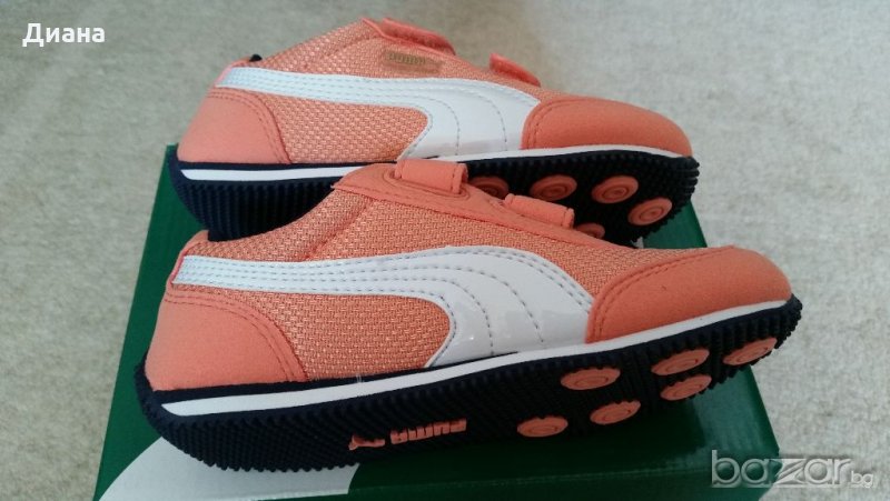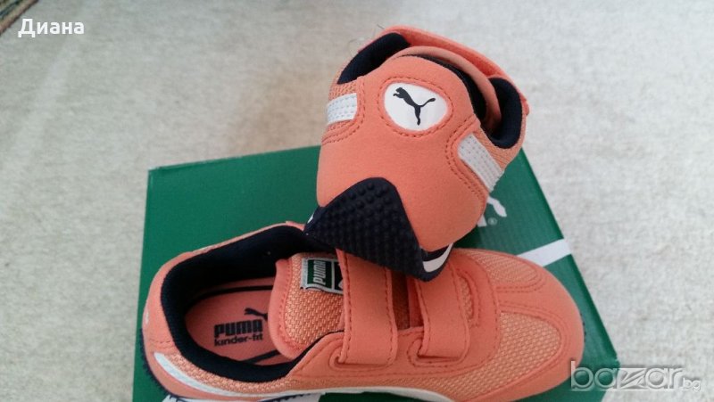 Детски маратонки Пума. Размер EUR 26 UK 8.5 US 9.5.Дължина на стелката измерена лично 16.5см. Закопчаване с две велкро ленти.Цвят праскова. Много леки и лесни за обуване.