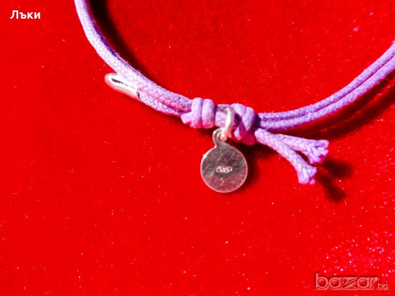 и виолетови сърца от клетъчен емайл.Проба 925,маркирана,тегло 3 гр.,дължина 20 см.Размер на сребърната апликация 23 х 18 мм.