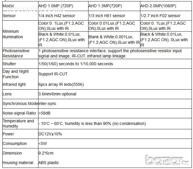 Видео изход: 1Vp-р, 75ohm , BNC конектор с HD AHD с Висока Резолюция