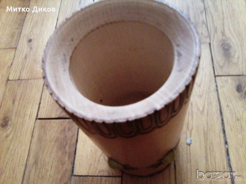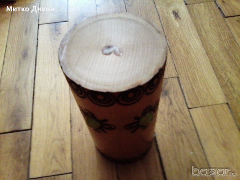 Диаметър външен 65мм-вътрешен 44мм и височина -150мм на дървената джаджа която е украсена с 5камъчета-изпращам по еконт с отстъпка