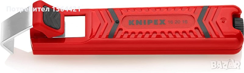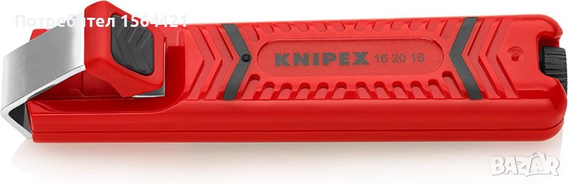KNIPEX инструмент за демонтаж, сваляне на облицовки, изолация 130 mm,16 20 16 SB, Германия. Характеристика на сваляне на изолацията /диаметър/ - 4.0 - 16.00 кв.мм. Дължина 130 мм, тегло 100 гр. Подходящ за сваляне на обвивката на всички стандартни кръгли кабели; самообтягаща се задържаща скоба; с настройка на дълбочината на рязане чрез регулиращ болт; въртящо се острие за периферно и надлъжно рязане; резервно острие в корпуса; безопасен захват, чрез меката компонента на подложката на дръжката и ръкохватката като ; защита от изплъзване, корпус: пластмаса, удароустойчива.