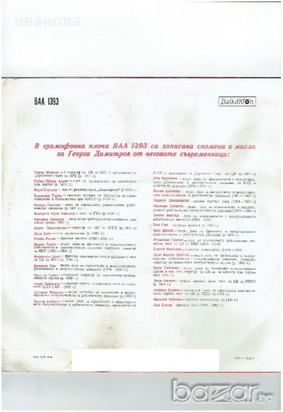 грамофонна плоча -Георги Димитров в спомените на негови съвременници -ВАА-1393