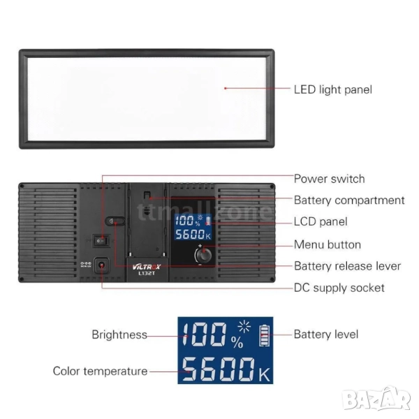 2A. Батерия за Li-ion , 320000mAh, 23W. VILTROX L116T LED – 38,99 лв
