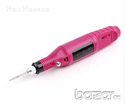 Eлектрическа пила-писалка за оформяне на маникюр – чисто нова мултифункционална пила за резба, гравиране, изрязване, изстъргване, заостряне, почистване, полиране, пробиване и много други – лесен и безопасен за употреба, професионален инструмент – подходящ за използване в професионалните салони за ноктопластика и за домашна употреба – почиства се с мека кърпа, като не се прилагат разтворители или почистващи препарати -снабден с адаптор от 9V – 1000ma, регулируема скорост от 3,000 до 18000 оборота в мин. – двойно изолирани лагери – удобен за работа при всяка позиция – пригоден за всички накрайници – лек дизайн за прецизна работа Спецификации: Захранване: еднофазово, 50-60Hz, 100-240VAC двойна изолация Скорост:: постоянна скорост – 18000 оборота в мин, променлива скорост –3000-18000 оборота в мин Патронник: 2,3мм или 3,0мм, пружина 0,3-3,2мм Размери:160мм х 24мм Опаковката включва: 1 бр. електрическа пила-писалка за оформяне на маникюр 1 бр. адаптор 6 бр. шкурки 6 бр. накрайници 1 бр. наръчник за употреба.