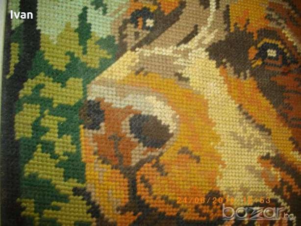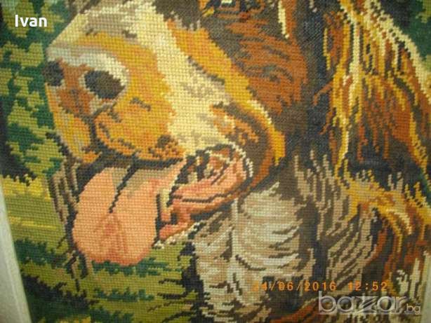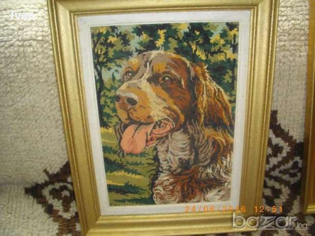 Почти нов,голям,рамкиран гоблен с ефектно изображение на голямо куче,от породата Английски кокершпаньол-търсач на