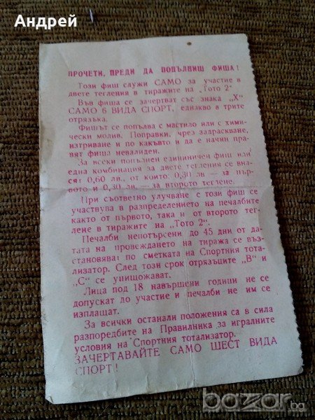 Стар тото фиш 1978г. → Обява 19333260