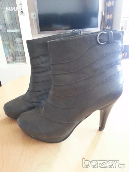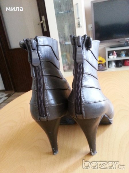 Сиви елегантни боти. Височината на тока е 10 см. на платформата отпред 1 см. както се вижда от снимките малко са носени.