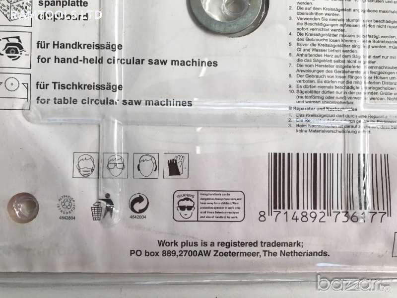 дискове циркулярни за дърво холандско производство (work plus) диаметър на отвора за захващане 30мм и допълнителни шайби за промяна на размера за захващане 16мм,22мм,и 25,4мм дебелина на видията 2.5мм