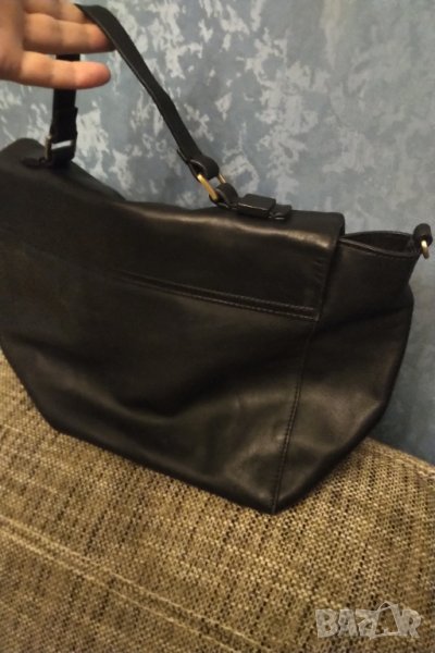 MALENE BIRGER 100% оригинал 100% естествена телешка кожа ,черна Размер 40 на 25 см Няма дълга дръжка така е купувана ,не може да се носи на рамо .Съвсем лека забележка на закопчалката снимана и съобразена с цената .Една основна преграда две по малки и една за документи .Купувана е за 160 евро кожата е в перфектен вид отвътре е като нова в бледо розова подплата Крайна цена без бартер