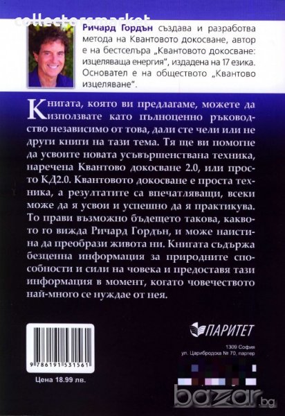 Книгата, която ви предлагаме, можете да използвате като пълноценно ръководство независимо от това, дали сте чели или не други книги на тази тема. Тя ще ви помогне да усвоите новата усъвършенствана техника, наречена Квантово докосване 2.0, или просто КД2.0. Квантовото докосване е проста техника, а резултатите са впечатляващи, всеки може да я усвои и успешно да я практикува. То прави възможно бъдещето такова, каквото го вижда Ричард Гордън, и може наистина да преобрази живота ни. Книгата съдържа безценна информация за природните способности и сили на човека и предоставя тази информация в момент, когато човечеството най-много се нуждае от нея.