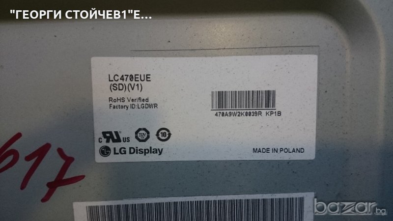 47LV3550  EAX64290501[0] EBT61396861 EAX62865401/8 6870C-0368A LC470EUE [SD][V1] 3660L-0369A 47 V6, снимка 1 - Части и Платки - 19348877 47LV3550  EAX64290501[0] EBT61396861 EAX62865401/8 6870C-0368A LC470EUE [SD][V1] 3660L-0369A 47 V6, снимка 2 - Части и Платки - 19348877 47LV3550  EAX64290501[0] EBT61396861 EAX62865401/8 6870C-0368A LC470EUE [SD][V1] 3660L-0369A 47 V6, снимка 3 - Части и Платки - 19348877 47LV3550  EAX64290501[0] EBT61396861 EAX62865401/8 6870C-0368A LC470EUE [SD][V1] 3660L-0369A 47 V6, снимка 4 - Части и Платки - 19348877 47LV3550  EAX64290501[0] EBT61396861 EAX62865401/8 6870C-0368A LC470EUE [SD][V1] 3660L-0369A 47 V6, снимка 5 - Части и Платки - 19348877 47LV3550  EAX64290501[0] EBT61396861 EAX62865401/8 6870C-0368A LC470EUE [SD][V1] 3660L-0369A 47 V6, снимка 6 - Части и Платки - 19348877 47LV3550  EAX64290501[0] EBT61396861 EAX62865401/8 6870C-0368A LC470EUE [SD][V1] 3660L-0369A 47 V6, снимка 7 - Части и Платки - 19348877 47LV3550  EAX64290501[0] EBT61396861 EAX62865401/8 6870C-0368A LC470EUE [SD][V1] 3660L-0369A 47 V6, снимка 8 - Части и Платки - 19348877 47LV3550  EAX64290501[0] EBT61396861 EAX62865401/8 6870C-0368A LC470EUE [SD][V1] 3660L-0369A 47 V6, снимка 9 - Части и Платки - 19348877 47LV3550  EAX64290501[0] EBT61396861 EAX62865401/8 6870C-0368A LC470EUE [SD][V1] 3660L-0369A 47 V6, снимка 10 - Части и Платки - 19348877 1/10