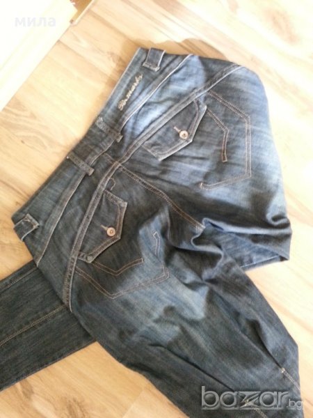 Дънките са много интересен модел. Стават за есенно зимния период.Талията е 40 см. едностранно, ханш 66 см. дължината на крачола е 84 см.