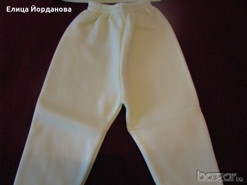 Нов детски комплект с етикетчето, състоящ се от блузка и панталонче. Блузката е с детска апликация, мека материя са. Подходящ и за подарък. Панталончето е с ластиче в кръста. Блузката е с дълго ръкавче.