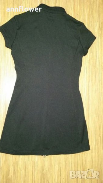 Роклята няма етикет, защото е изпрана но не е носена . Дължина 82см, ширина на раменете 40см, ширина в мишниците 45см, в талията 37см на подгъва 53см. Има еластичност черна на цвят синтетична материя.