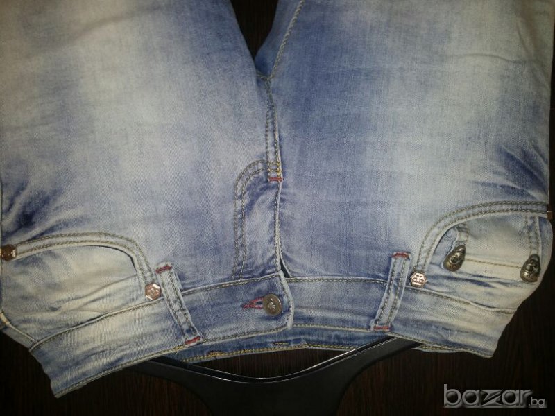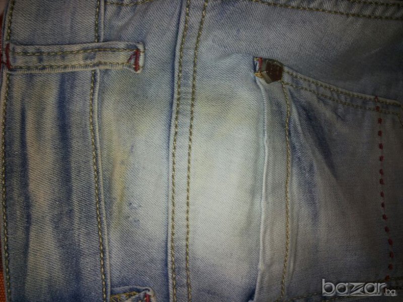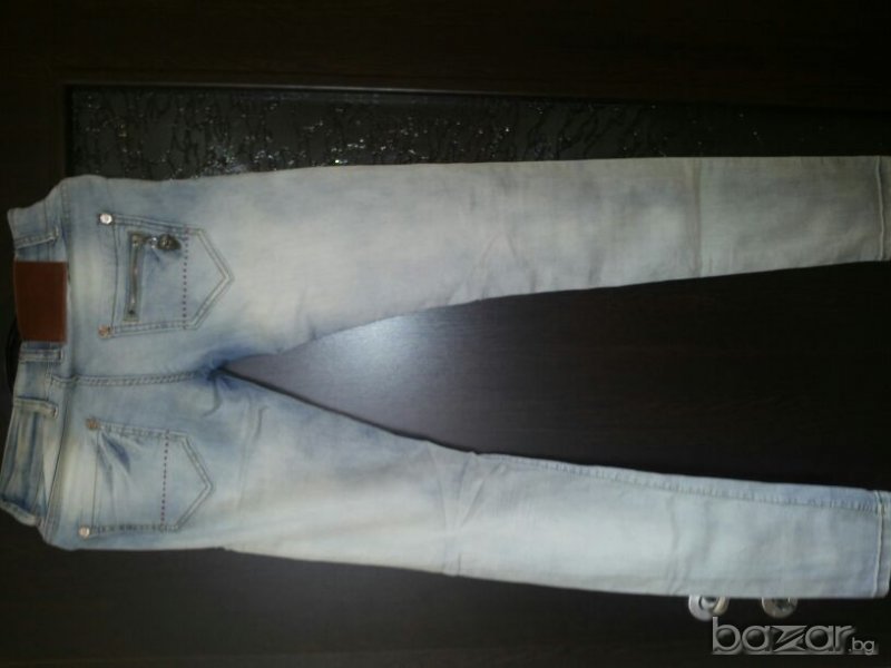 Страхотни дънки, обличани са 1 път, тънки са и много приятни за носене.Имат малка забележка-леко пожълтяване на задния ляв джоб от стоене в гардероба.