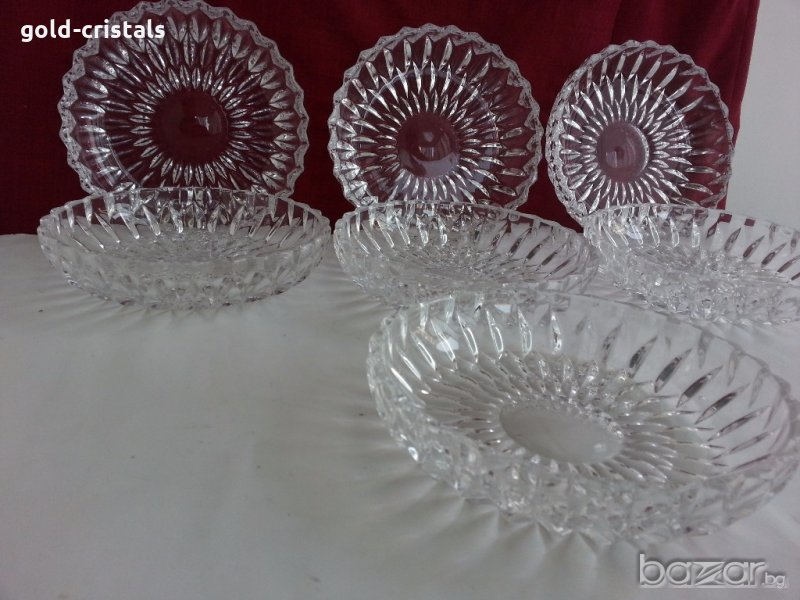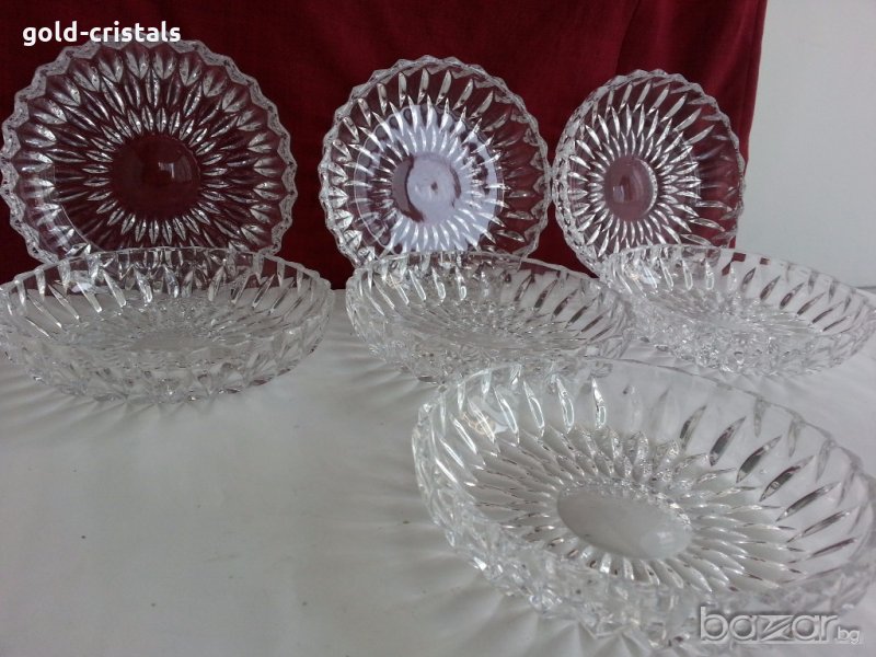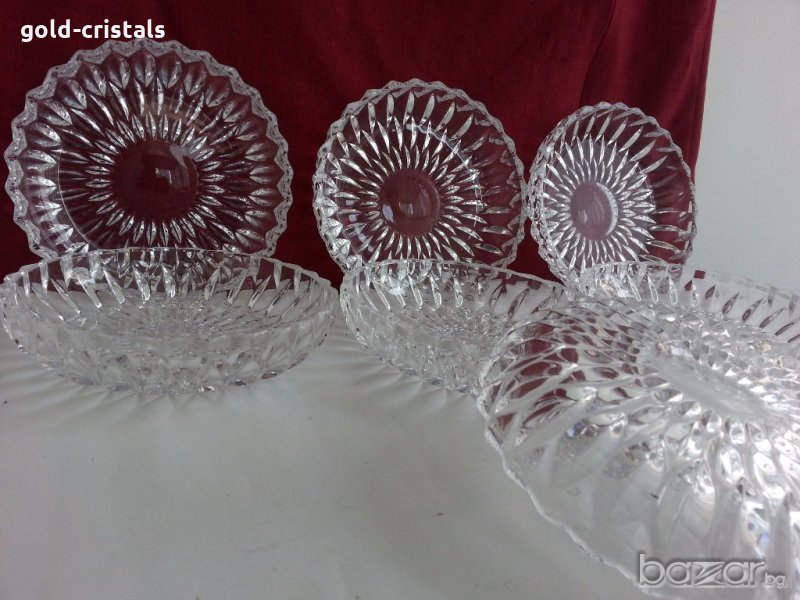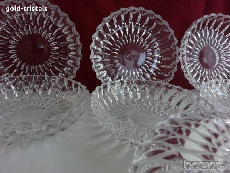 Кристални чинии купи купички 6 бр масивен и тежък немски кристал неизползвани комплект сет лот ретро стари арт декор винтидж колекция кристално стъкло стари антикварни предмети обзавеждане за дома и семейството подходящи за подарък за ценители и колекционери