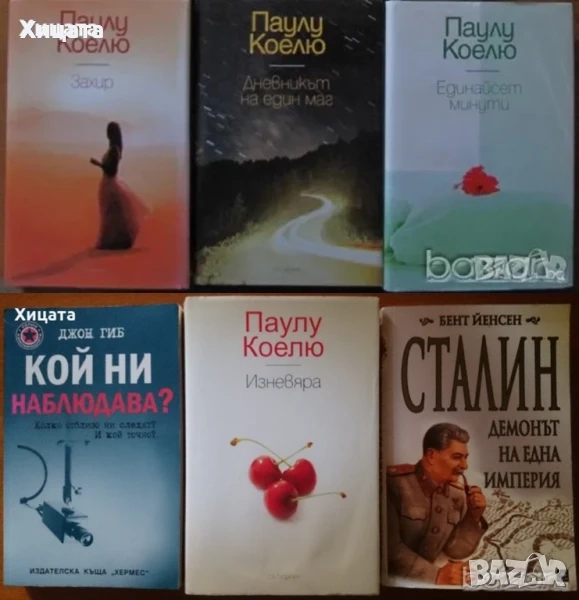 Книги на Паулу Коелю ,луксозни издания, 4 броя - 95лв! Елитни убийци,Сър Ранулф Файнс,Intense,2011г.424стр.Отлична! - 70лв. Екстремен ум,Алън Глин,Intense,2011г.384стр.Отлична! - 70лв. Ключът Гауди,Естебан Мартин,Андреу Каранса,Колибри,2010г.352стр.Отлична! - 60лв. Зовът на кукувицата,Робърт Галбрейт.Отлична! - 60лвКой ни наблюдава? Колко отблизо ни следят? И кой точно?,Джон Гиб,Хермес,2008г.288стр. - 30лв. Сталин.Демонът на една империя,Бент Йенсен,Персей,2007г.352стр. - 40лв.Дългият път надолу,Ник Хорнби - 50лв.Трудно е да бъдеш добър,Ник Хорнби - 50лв.Кажи ми, Маркъс,Ник Хорнби - 50лв.Егати животът,Ник Хорнби - 50лв.Дебела антология на адски смешното фентъзи,Поднесена от Майк Ашли,Бард,2003г.464стр. - 50лв. Островът от предишния ден,