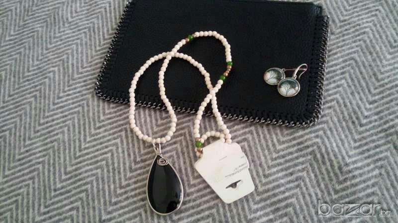 Нова висулка, с етикет, черен медальон, камъни, подходяща за подарък, цена 6лв