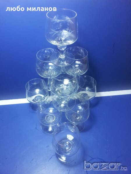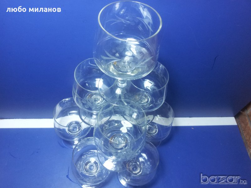 9 бр гравирани конячени чаши със столче → Обява 19391480
